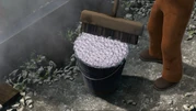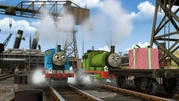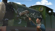 במחצבה, מייביס עסוקה מִדַי בעבודתה כדי להביט בחבילה של פרסי. לפתע מפיל רוקי ערימת צפחה על קרונותיה של מייביס ואבק צפחה מתפזר לכל עבר, ומלכלך את פרסי, את מייביס ואת חבילת יום ההולדת. פרסי המודאג ניגש לעמדת השטיפה כדי להתנקות, אבל המים ניתזים ממנו ומרטיבים את החבילה. הוא לוקח אותה למוסך הקיטור כדי לייבשה, אבל החבילה מתעוותת.