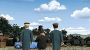 - בצילום השני בתחילת הפרק חסר בלם הרתיעה הימני האחורי של הקרון האחרון של ג'יימס.