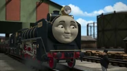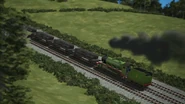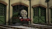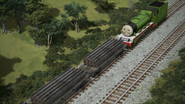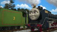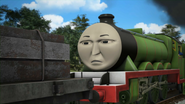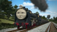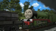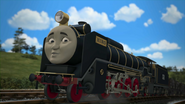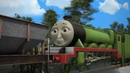 - הנרי משמיע את צפירתו של הירו כשהוא מתנתק מרכבתו כדי לחזור למחסן.