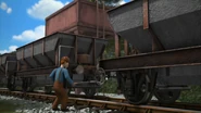 - פועל מחצבה נמצא בְּתא הנהג של דאק כשהוא מסַפֵּר להירו ולהנרי על הפחם הלא-איכותי, אבל כשהוא צופר נמצא בו נהג או מסיק.