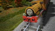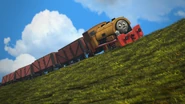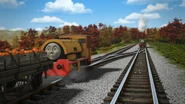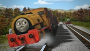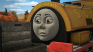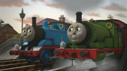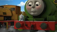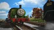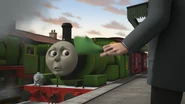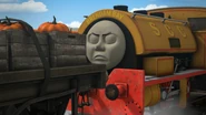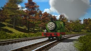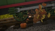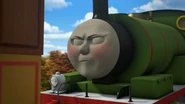 פרסי ממהר בניסיון לפצות על זמן שאבד. הוא מבחין לפתע בְּכמה דלעות על המסילה שנפלו מרכבתם של ביל ושל בן. פרסי בולם, אבל אינו יכול שלא לדרוס את הדלעות. ארגזים נופלים מרכבתו וחלק מליבות הדלעות נדבקות לגלגליו. לא נותרת לו ברירה אלא להמתין לְניקוי אי הסדר. בו בזמן מגיע הירו ופרסי מסַפֵּר לו על ההתחלה הרעה של יומו. הירו אומר לפרסי שהוא פשוט חווה יום חסר מזל. כשהירו עוזב נזכר פרסי בִּדבריו של תומס על מזל רע קודם לכן ותוהה אם הוא קטר חסר מזל.
