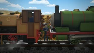 בינתיים, בְּתחנת מרון מדבר המפקח השמן בְּחומרה עם ביל ועם בן. במטרה לוודא ששאר מִטעָנם ישאר ללא פגם דורש המפקח השמן שאחד מהם יגש לחזית והשני ידחוף מאחור. ביל ובן מתווכחים בשאלה מי יגש לאן, ולבסוף ביל ניגש לירכתי הרכבת לאחר שהמפקח השמן נותן בהם מבט נוזף.