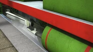 - בִּשני הצילומים הראשונים בְּוולזוורת' מרחף בלם רתיעה מעל למסילה האמצעית.