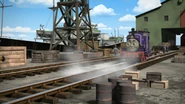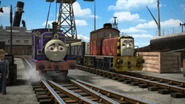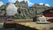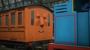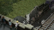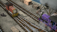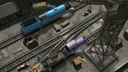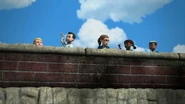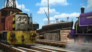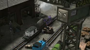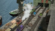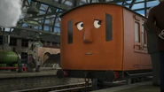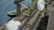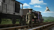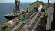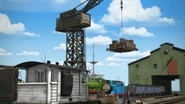 - גורדון מוביל קרונות אקספרס בפעם הראשונה שצ'ארלי מגיע לנמל, אך הקרונות נעלמים בצילום האווירי שבו קרנקי טוען את הקרון השטוח של צ'ארלי.