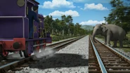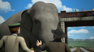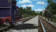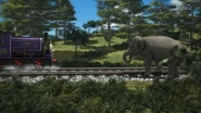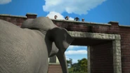 צ'ארלי פוגש את תומס ומנסה להסביר בדבר הפיל. תומס חושב שמדובר בְּעוד בדיחה של צ'ארלי ועוזב להסיע את נוסעיו. צ'ארלי מופתע מתגובתו של תומס. בהמשך פוגש צ'ארלי את פרסי, המוביל רכבת משא. צ'ארלי מקבל תגובה זהה מפרסי, החושב אף הוא שצ'ארלי מתלוצץ. בְּמגרש העיתוק מנסה צ'ארלי להסביר על הפיל להנרי, והוא אומר שאין לו זמן לִבדיחות ועוזב.