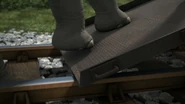 - כשהפיל מובל לתוך הקרון נקטעות המסילות לפתע ונראות כמובילות הישר לתוך ההר שברקע.