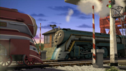 - כאשר קייטלין עוברת בְּוולזוורת' עם "הדג המעושן המעופף", שלושה קרונות ארגזיים אפורים גדולים מִדַי ביחס לקרונות לשימוש הכללי (Utility vans).
