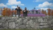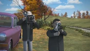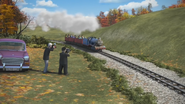 When the Thin and Fat Clergymen visited the Arlesdale Railway, they drove a purple car with the number plate "040 BMC". At one point they accidentally drove through a puddle and muddy water splashed onto Bert while he was pulling a passenger train.