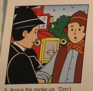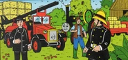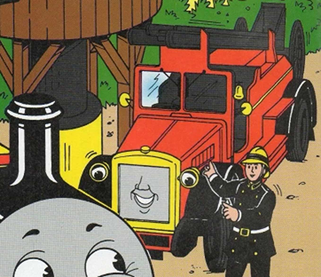 - A faceless fire engine illustrated in the same poses as Angus appeared in the magazine stories, The Fire Engine! and The Clever Catch!. It had a grey radiator front in the same shade as Thomas and Gordon's face, indicating they may have been originally illustrated with faces similarly to Flying Thistle and The Mainland Traction Engines.