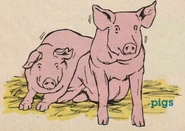 Thomas rounds a bend to his next stop when, suddenly, there are pigs on the line! Thomas calls for them to get out of the way and they run off. Thomas alerts a farmer who deduces that there is a hole in their fence. Thomas' crew goes to help round the pigs up but they are just too fast for them to catch! The farmer then grabs a sack of potatoes and empties it into the pigs' trough. The pigs recognize the sound and head back to the farm to be fed, pushing through the damaged section of fence. The farmer promises to fix it right away.