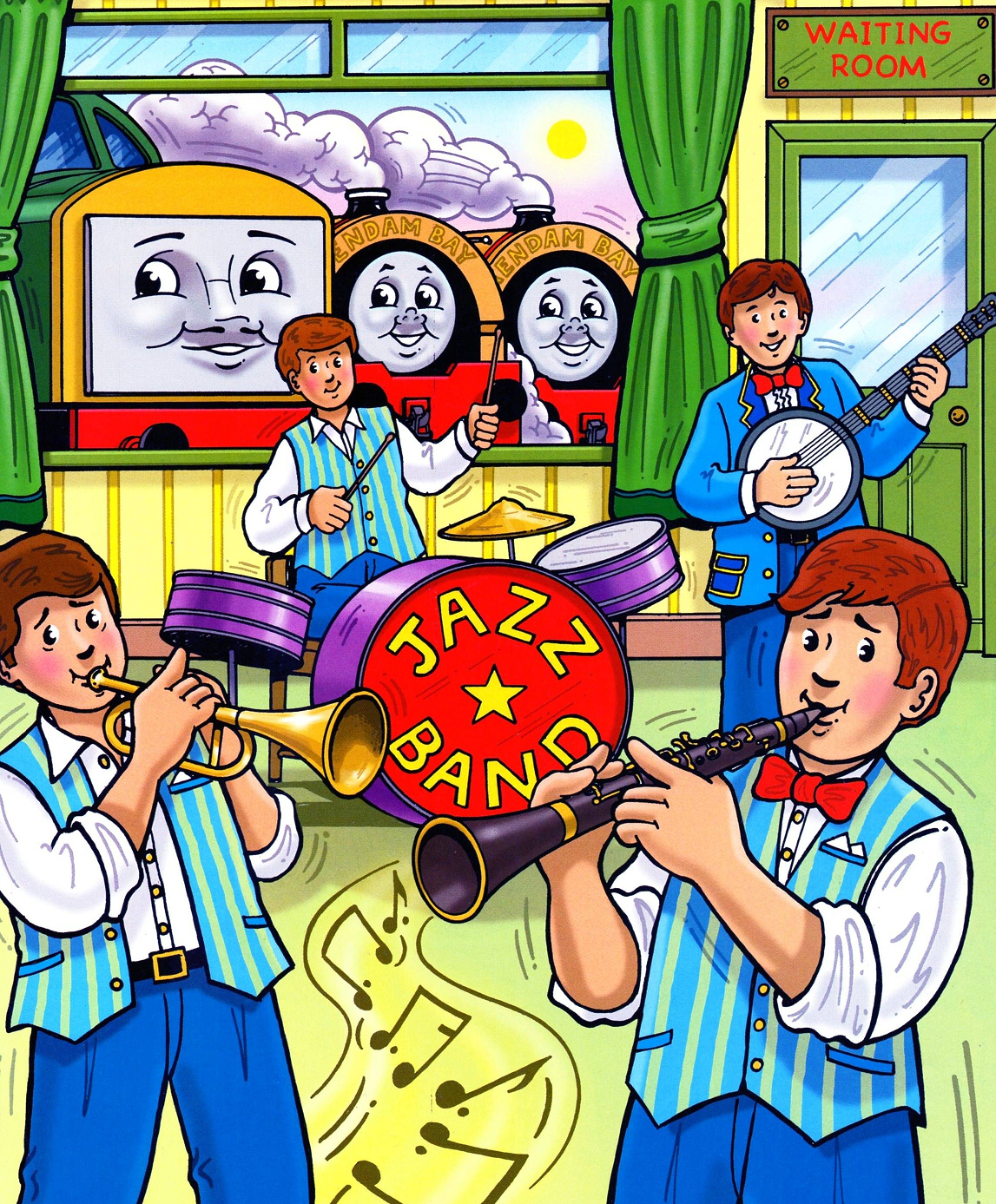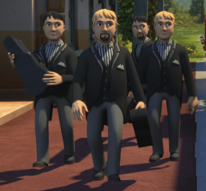 The Sodor Railway Jazz Band perform shows across the Island of Sodor and rehearse in a station waiting room. Bill, Ben and Class 40 are all fans of their music.
