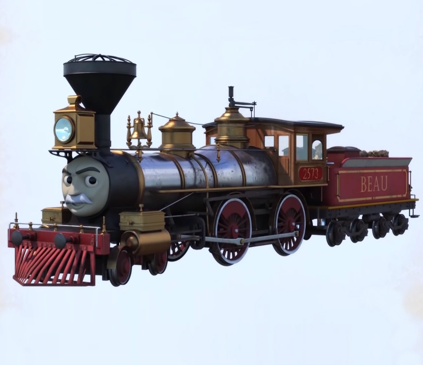 - According to concept art, Beau was originally going to have a grey boiler, gold whistle and black tender, lamp, cowcatcher and domes. He also has no tail-lamp.