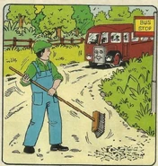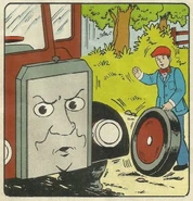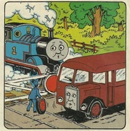 Next day, when Thomas brings more supplies, he sees Bertie again. Suddenly, Bertie's tyre bursts! His driver steps down to replace it. The driver finds a nail in the burst tyre. Thomas is puzzled, as he thought all the nails were cleared away. Later on, Thomas sees Bertie stuck on the level crossing. Bertie grumpily explains that he had yet another puncture from a nail.