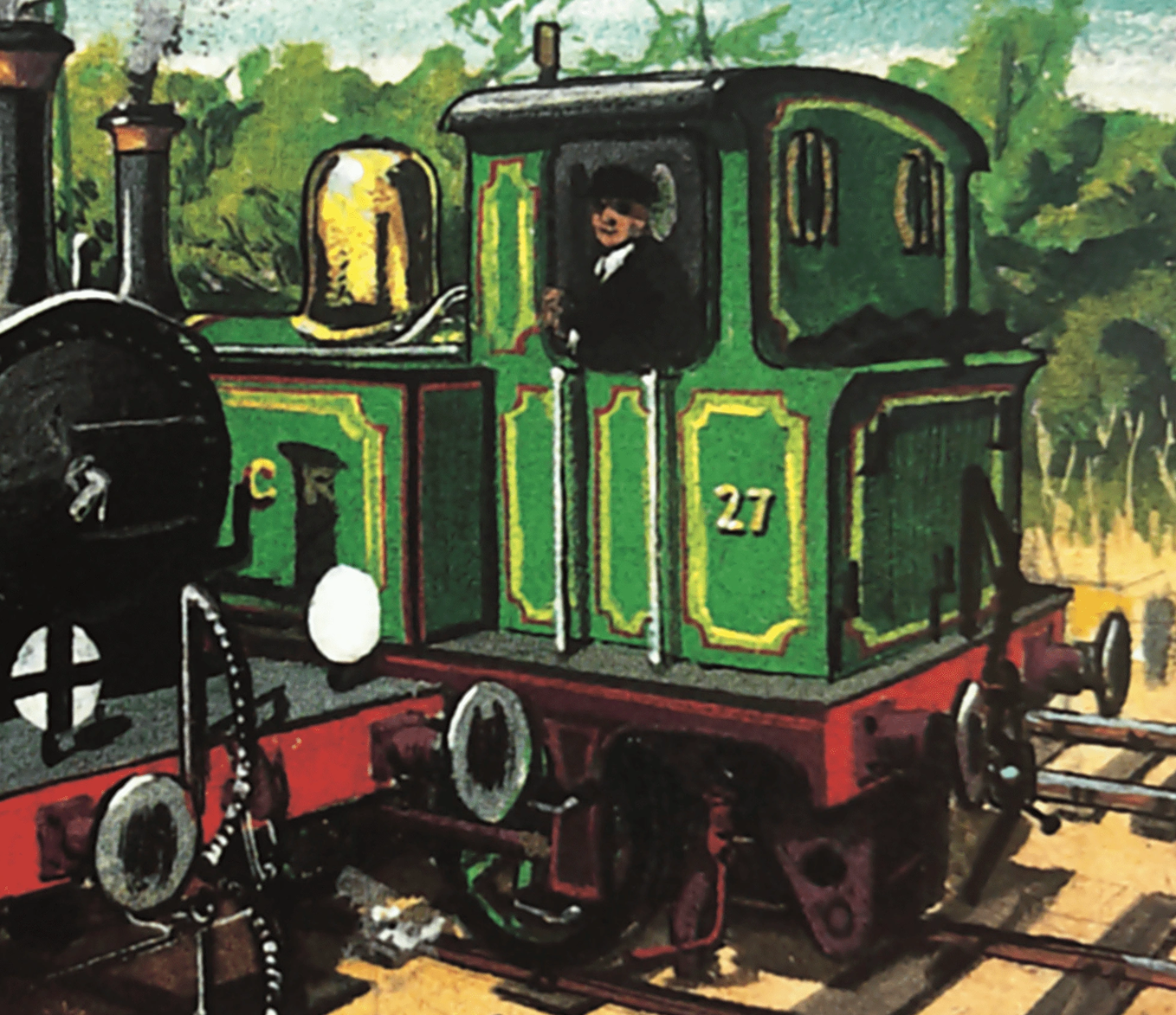 Primrose is painted dark green with red and yellow lining. The initials "SE&CR" are painted on the sides of their tanks in yellow and their number (27) is painted on the sides of the bunker, also in yellow.