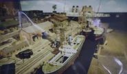 Close-up models of some areas of Brendam Docks were built to be used for scenes involving the close-up scale figures.