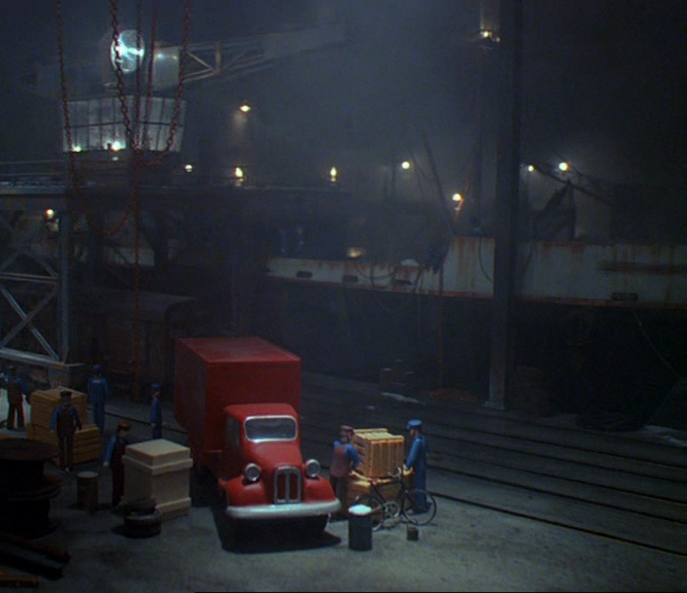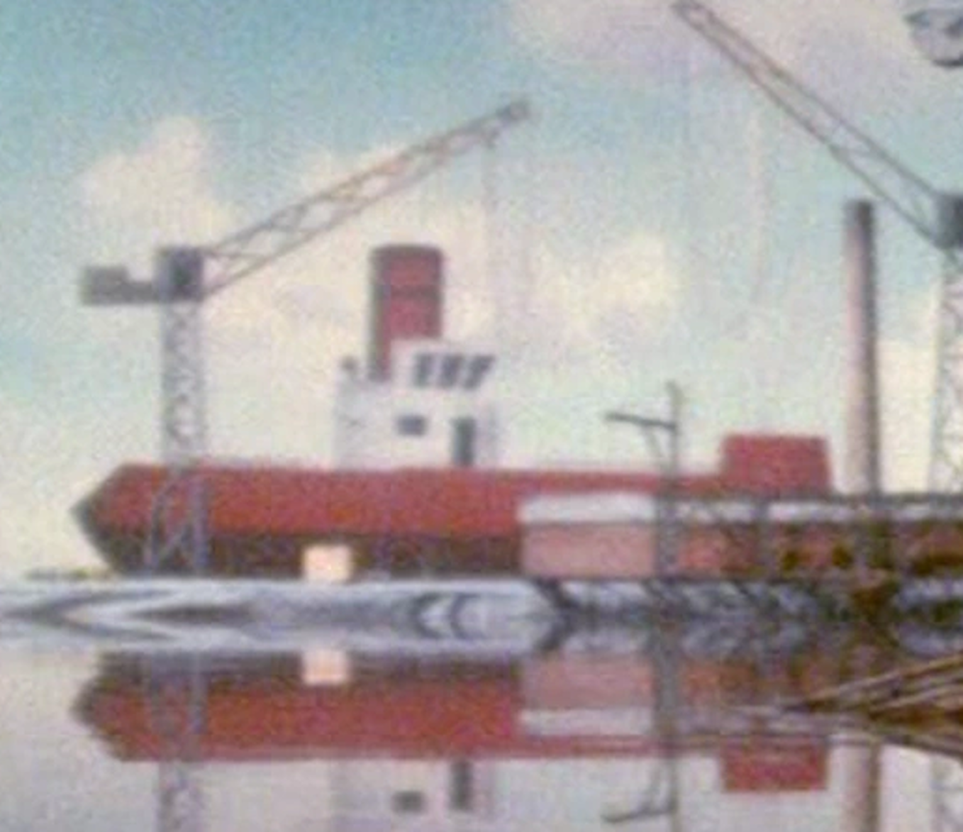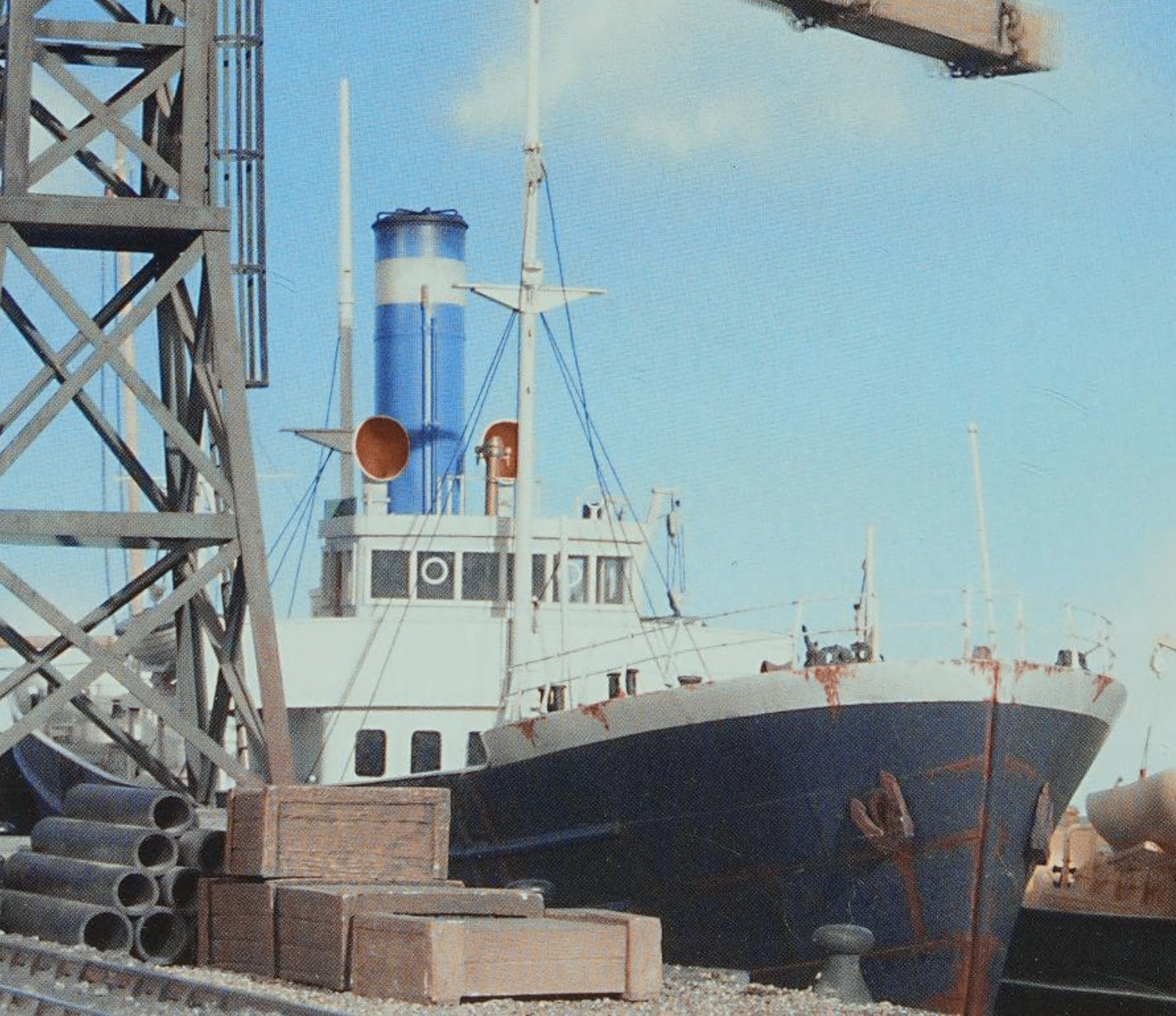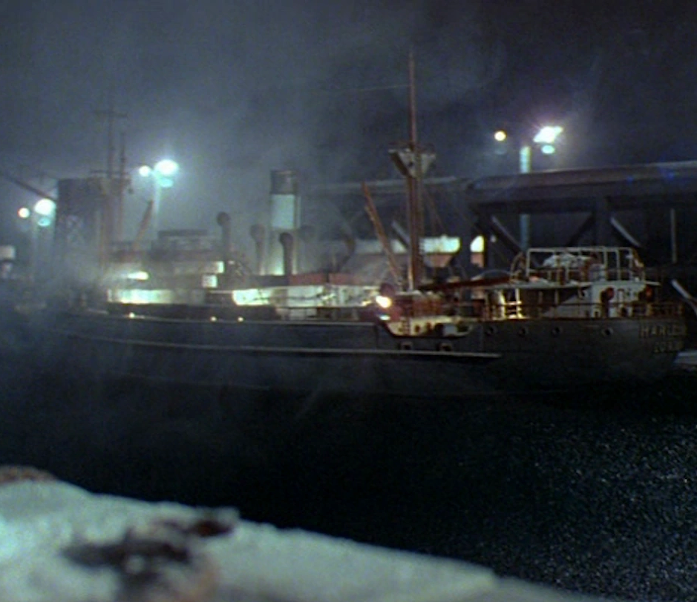 The blue tramp steamer shares the same horn sound with Terrey. The sound originates from a recording of Hamburg Harbour.