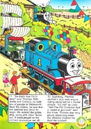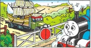 THomas suddenly sees a pirate ship in the distance behind the hedge, but his driver assures that it is a model for the Carnival. Later, he tells Thomas that the carnival begins next Saturday. Trevor states that he was going to be in the carnival and later, Sir Topham Hatt informs Thomas that he was going to be featured in the carnival. On the day of the carnival, Thomas is thoroughly cleaned and decorated. And finally, Thomas stops at the station and sees a replica of himself being carried in a lorry flatbed. The children cheer at them the loudest!