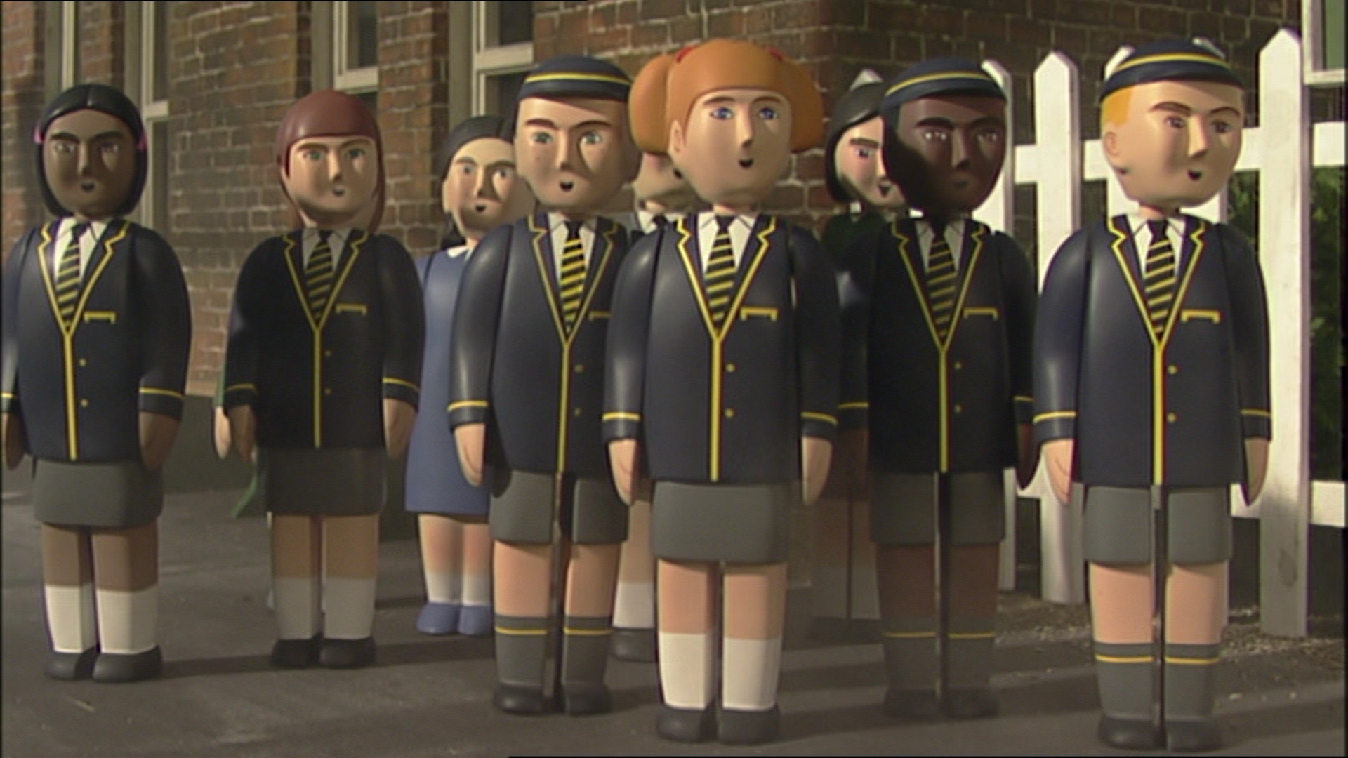 The Dark Blue Uniformed Children are a group of children who go to the various schools around the Island of Sodor, such as Harwick School.