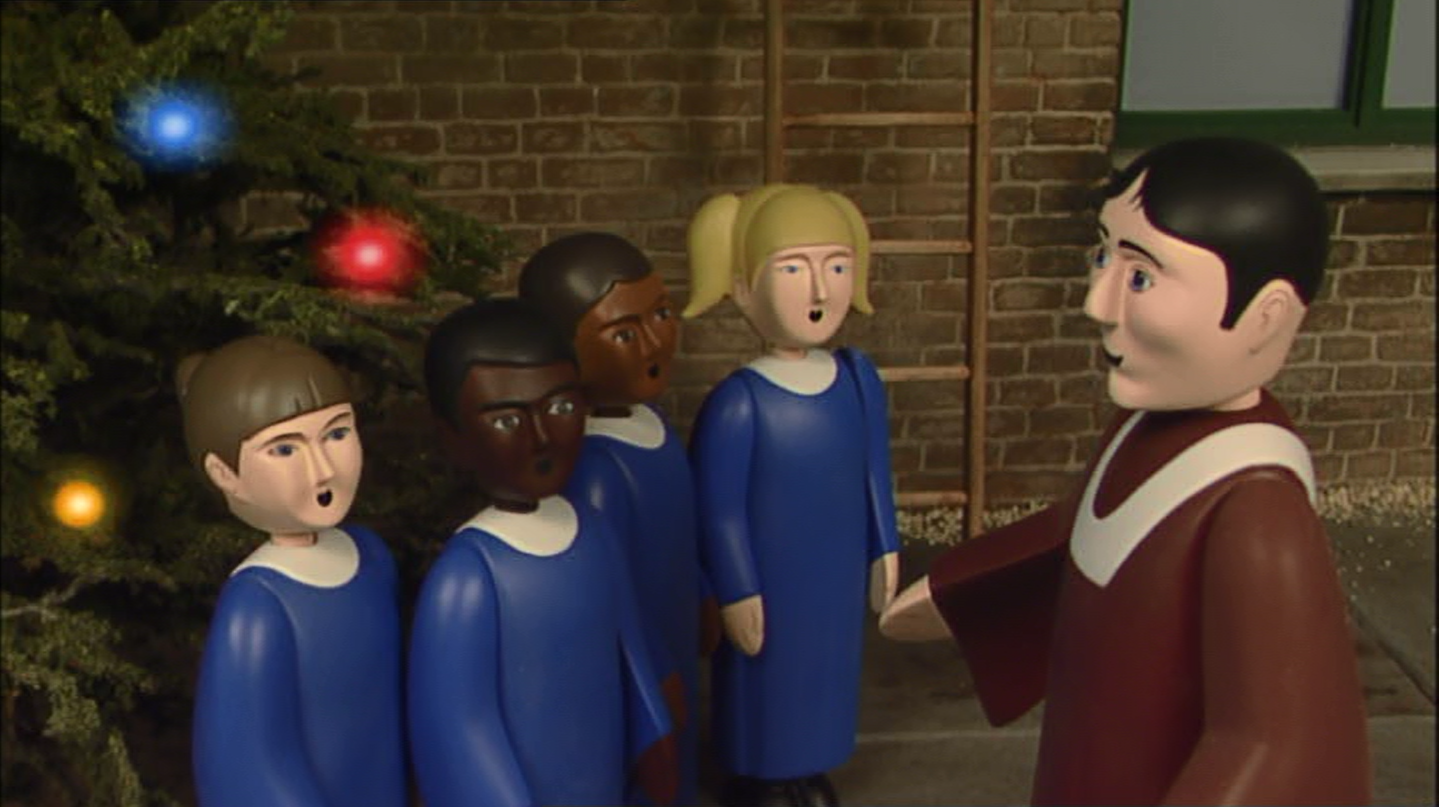 During Christmas time, the school choir practised at Knapford while James was waiting for Edward to arrive for them to deliver trucks to the Coaling Plant.