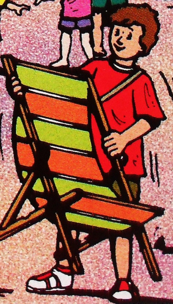Danny is in charge of hiring deckchairs to holidaymakers on the beach but one day, Lorry 1 crushed his store-shed. Danny was worried that the tide would wash his chairs away, so his good friend, Bulstrode, told him to stow the deckchairs safely in his hull overnight. The next morning, Danny mended his store-shed and gave a gift for Bulstrode - a roll of stripy deckchair material to cover his hull so that Bulstrode did not get continuously hit with beach balls and kites. He is very kind and in the event of a deckchair being torn, he never seems annoyed. He just takes the damaged chairs home and mends them with stripy deckchair canvas that he keeps for just such an occasion.