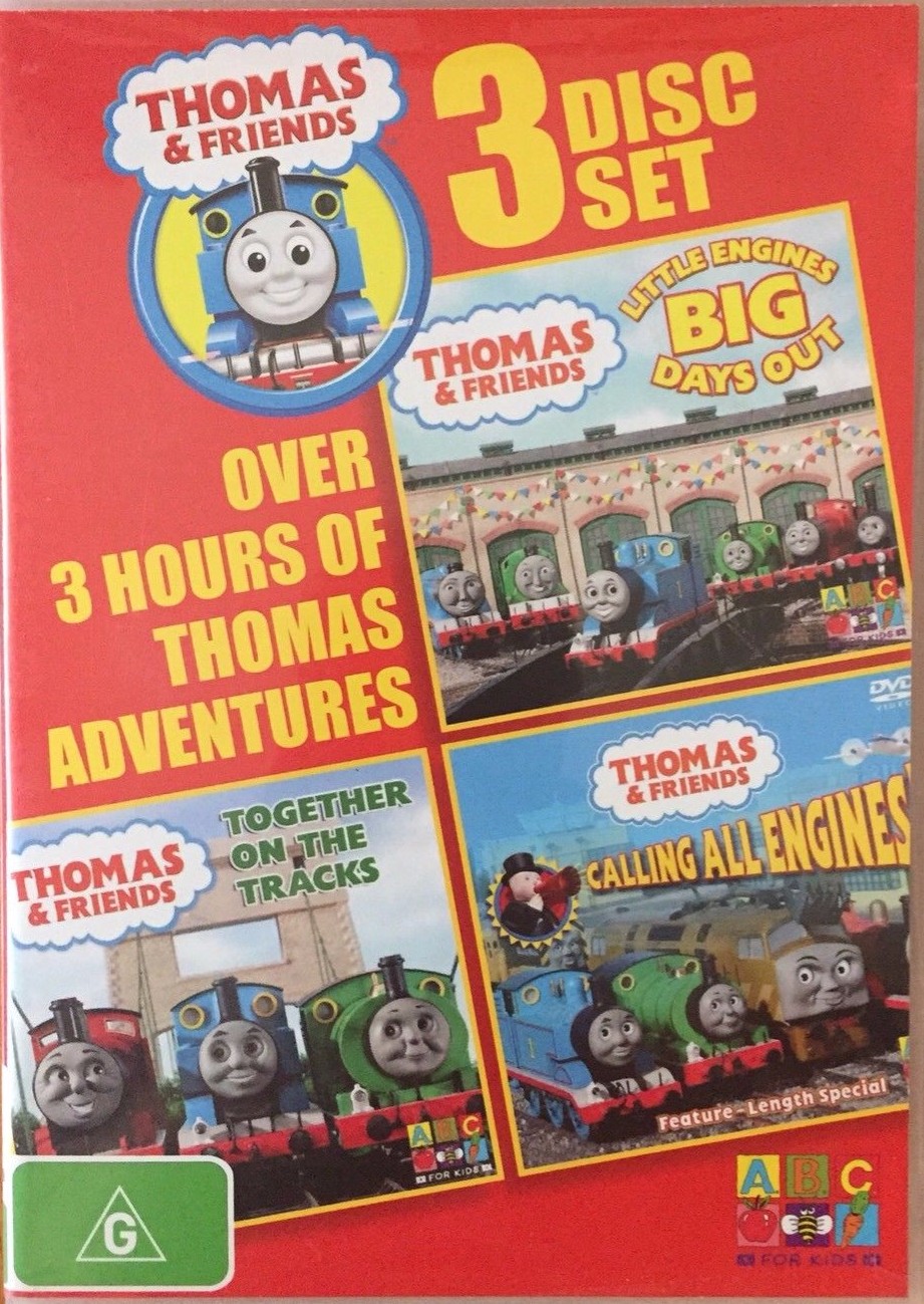 - The DVD cover shows Thomas' head lamp floating between Gordon and Percy. This is because the image of the engines lined up is an edited promotional image from Calling All Engines!. Yellow can also can be seen behind Edward’s windows.