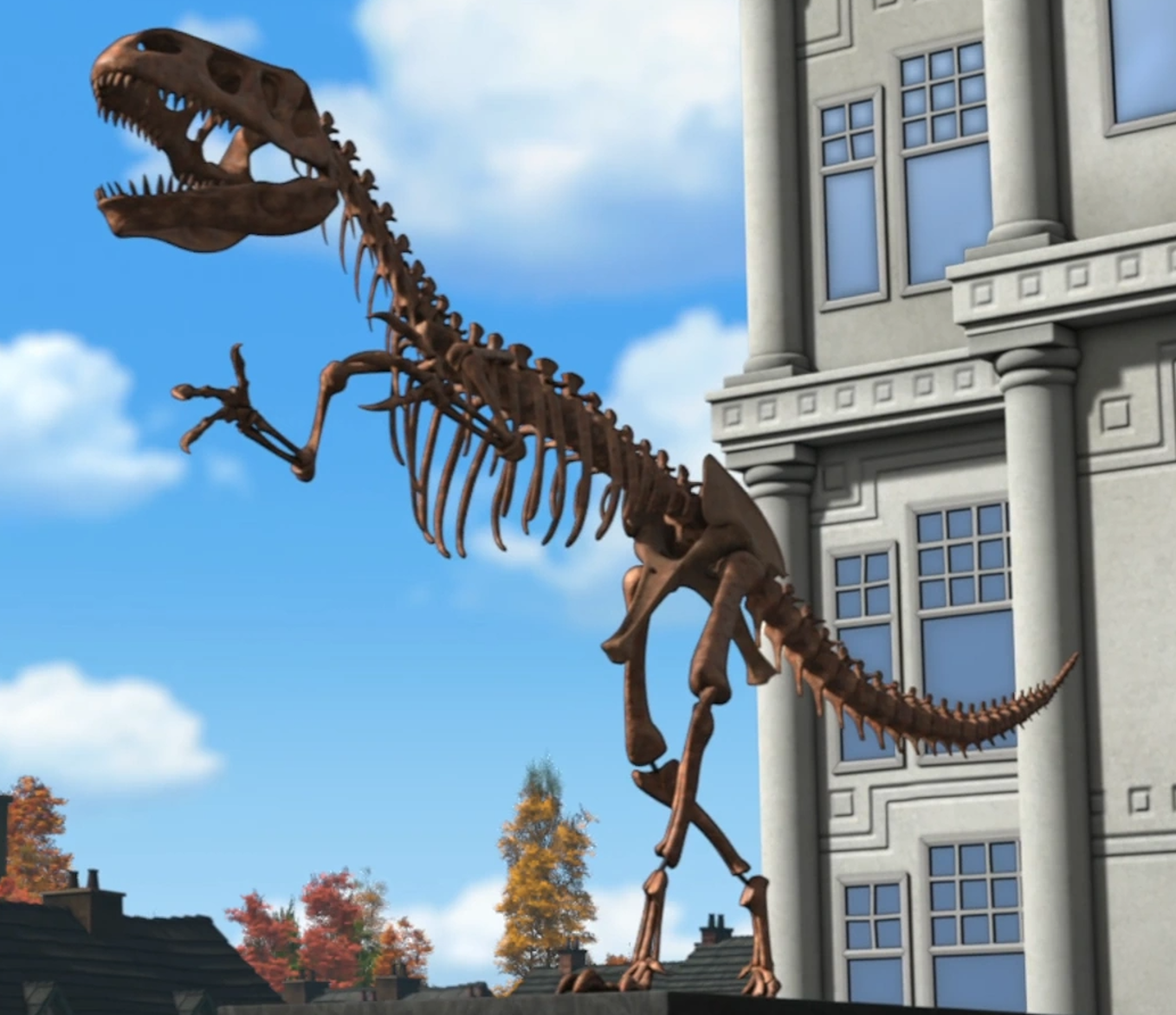 In Thomas and the Dinosaur (1992), a model of a Tyrannosaurus was on display at the Dinosaur Park. In Thomas and the Dinosaur! (1994), Thomas and the Dinosaur (2000) and The Dinosaur, Thomas delivered various Tyrannosaurus models to the Dinosaur Exhibition. In Thomas-saurus Rex, Stepney and Thomas delivered a Tyrannosaurus fossil to the Tidmouth Museum. In Thomas and the Dinosaurs, James delivered a model of a Tyrannosaurus to the Dinosaur Park.