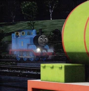 Thomas' first stop is the quarry. He blows his whistle loudly to let everyone know he has arrived; he does not realise that Mavis is still asleep. At Brendam, Thomas peeps even louder to signal his arrival. This time he wakes up a rather unhappy Cranky. Later that day, Thomas returns to the quarry. He is surprised to see a workman shouting; Mavis had not lined up her trucks correctly under the hopper. Thomas is puzzled; Mavis never makes mistakes. This is because Mavis is so tired that she has fallen asleep. When Thomas arrives back at the sheds, the Fat Controller is waiting for him. He is cross because everyone has been too tired to work. Thomas concludes that it will be best to ask for Percy's advice after all.