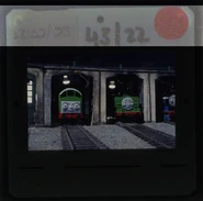 (Note: Gordon has his laughing face and is missing his eyebrows) (Note: Edward is missing his eyebrows) (Note: Blue wires can be seen on Edward and Henry's running boards) (Note: BoCo's shed doors are hanging loose and Gordon's eyes are wonky)