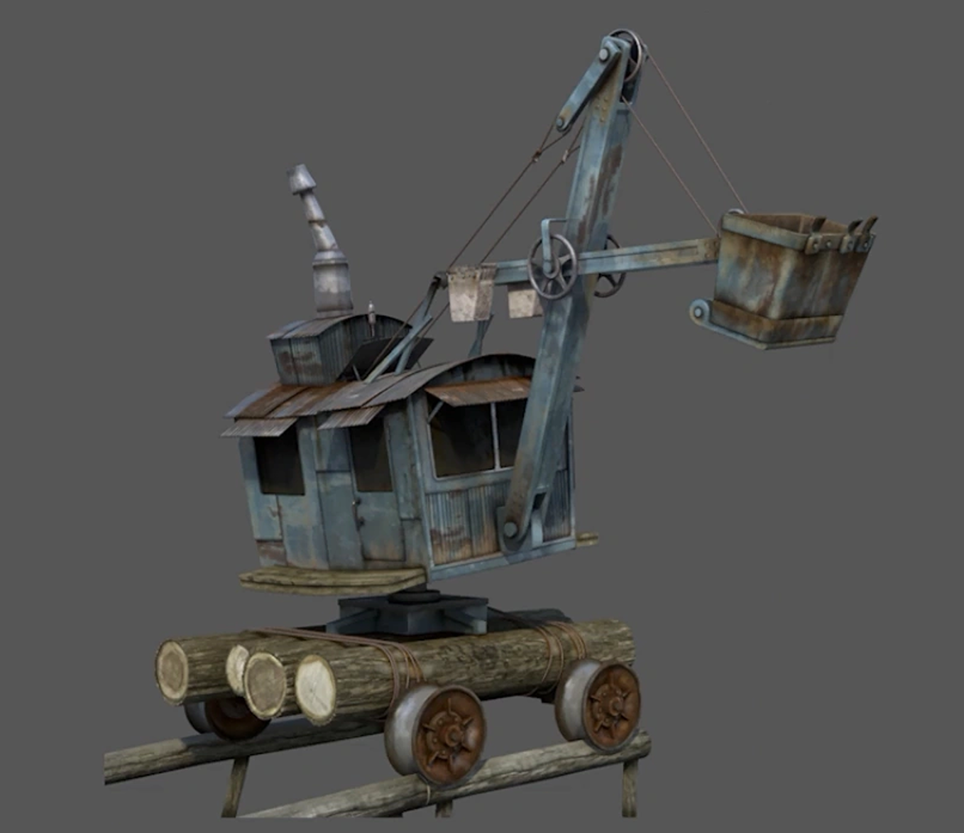 The Railway Steam Shovel was an old piece of rolling stock. It had a short wheelbase and was originally accompanied with a flat truck to rest the arm when it was stationary.