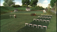 Farmer Trotter's close-up body was originally Jem Cole's from the second series, while the head was originally the Tidmouth stationmaster's. Both were repainted for Farmer Trotter.