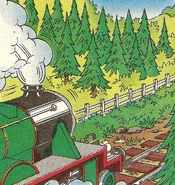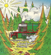 Henry has seen many things change on Sodor. He remembers how there were no Diesel engines before the big harbour was built. One of Henry's favourite places is the forest of pine trees which he passes when he pulls the express. He can remember when the forest was being planted. Terence and Trevor had helped with the heavy work. When first built, the forest looked a little peculiar seeing the straight rows over the rolling hills. As time passed, the trees grew and now there is a fine forest of magnificent, strong trees.