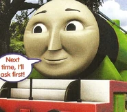 Henry is puffing along when he suddenly collides with a truck. Henry thinks it is very dangerous and later Kevin explains about "health and safety". Henry sets off and it is not long before he spies a "health and safety hazard". A log had toppled off of a log car and onto the track. Henry collects Rocky and the log is soon moved. A bit later, Henry sees Percy broken down on the line. Henry gets Rocky to move Percy too! Then, the Fat Controller arrives; he is cross as Henry took Rocky without asking and Henry realises that good health and safety means asking permission first.