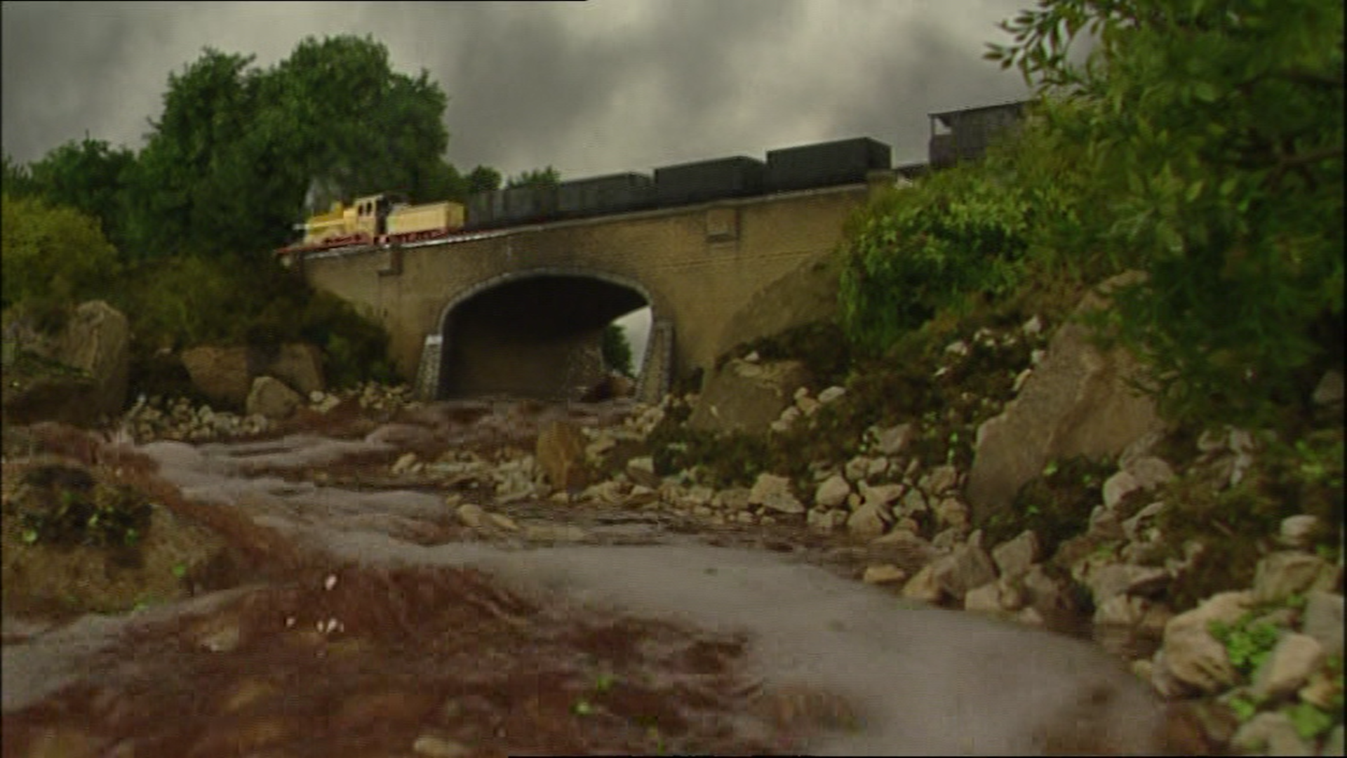 Some workmen were once working on the bridge when they were warned of Toad and his runaway trucks. They diverted the runaway train onto an old siding beside the bridge, where the tracks had sunk into a muddy pond.