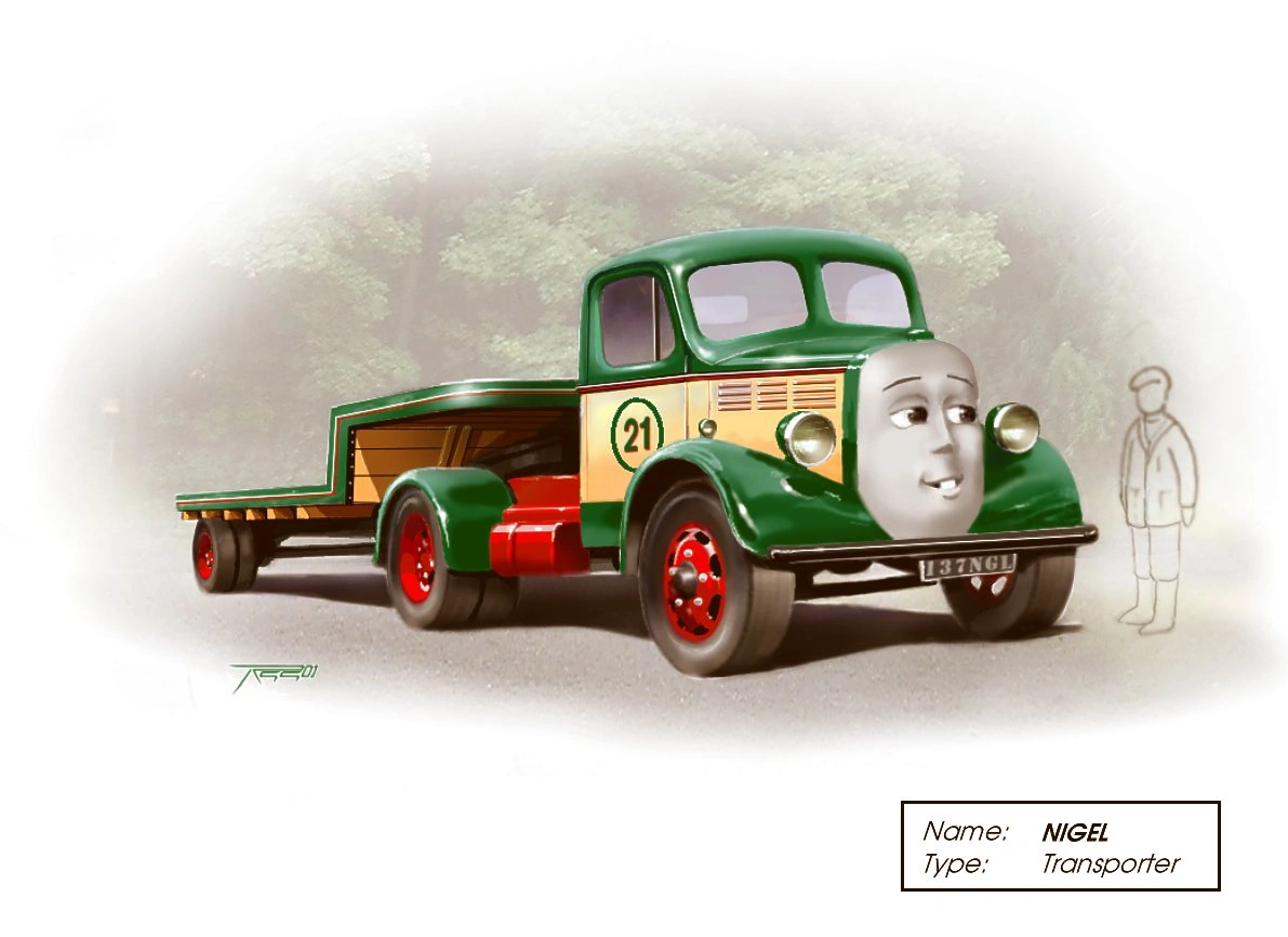 Nigel was developed by Robert Gauld-Galliers before writing for the sixth series started, but was not included in any scripts of the episodes that were produced and filmed for the series and was dropped. The cancelled character may have been named after camera assistant, Nigel Permane who was the director of photography for Jack and the Sodor Construction Company.