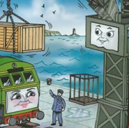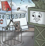 Daisy is at the docks and sees Cranky hard at work and boasts that freight is not as important as passengers. This upsets Cranky. A day later, the Fat Controller sends Daisy to pick up some railway inspectors from the Mainland, but the ship's gangplank is damaged by a strong wave. Cranky comes to the rescue by using a special metal cage to lower the passengers near Daisy.