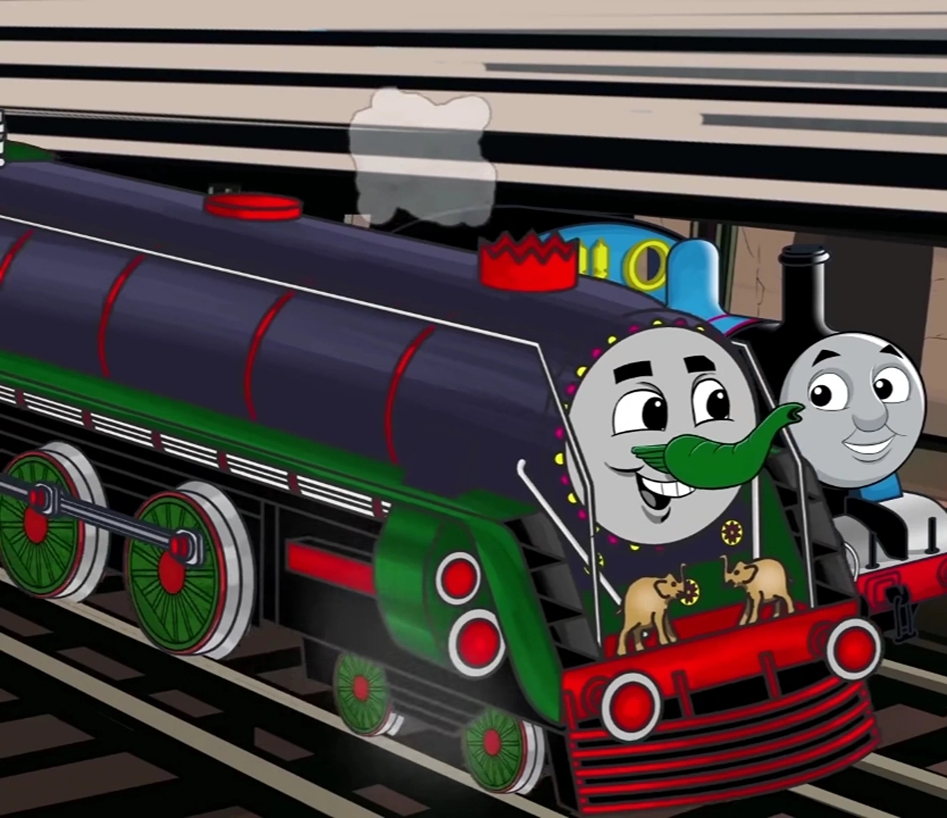 Rajinda first met Thomas at Jaipur Junction when the tank engine was collecting some fabric. Thomas was curious that Rajinda had an elephant nose, which the tender engine replied "Brilliant, isn't it?"