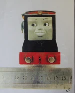 The model had a motor to power it mounted inside the chassis as well as an eye mechanism. There was no room to fit a battery and receiver needed for the R/C eyes. Wires connecting to the battery, servo and receiver were usually hidden off camera or carried in trucks behind the engine. The eye mechanism used servos mounted in the cab; the servos were hidden by blacking out the cab doors and windows. Metal rods went from the servos in the cab to a bracket in the smoke box behind the face-plate, one for up and down movement and one for left and right movement. This limited the range of movement of the eyes as well as being cumbersome and jamming often. Rusty is nearly twice the size of his basis. This was so his eye mechanism and motor could be accommodated.[2]