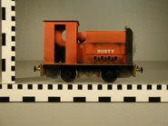 Rusty's wheels were sourced from unspoked SM32 "Quarry Hunslet" wheels made by Slater's Plastikard. These wheels were used on an O gauge locomotive chassis. The buffers were sourced from Slater's Plastikard as well, with most engines using the square based short sprung buffers.[2]