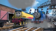As Thomas and Merlin puff through the countryside, they meet Trevor who is keen to show off his new, loud steam whistle. Thomas thinks he now sounds like a big steam engine.