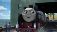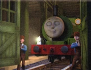That evening, at Tidmouth Sheds, all the engines are talking excitedly about Merlin. Percy is the only engine who hasn't seen the disappearing engine and that makes him feel sad.