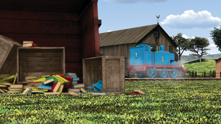 | After ignoring warning signs about track repair, Thomas' freight cars of books derail, so he brings the children to the books. | ||||