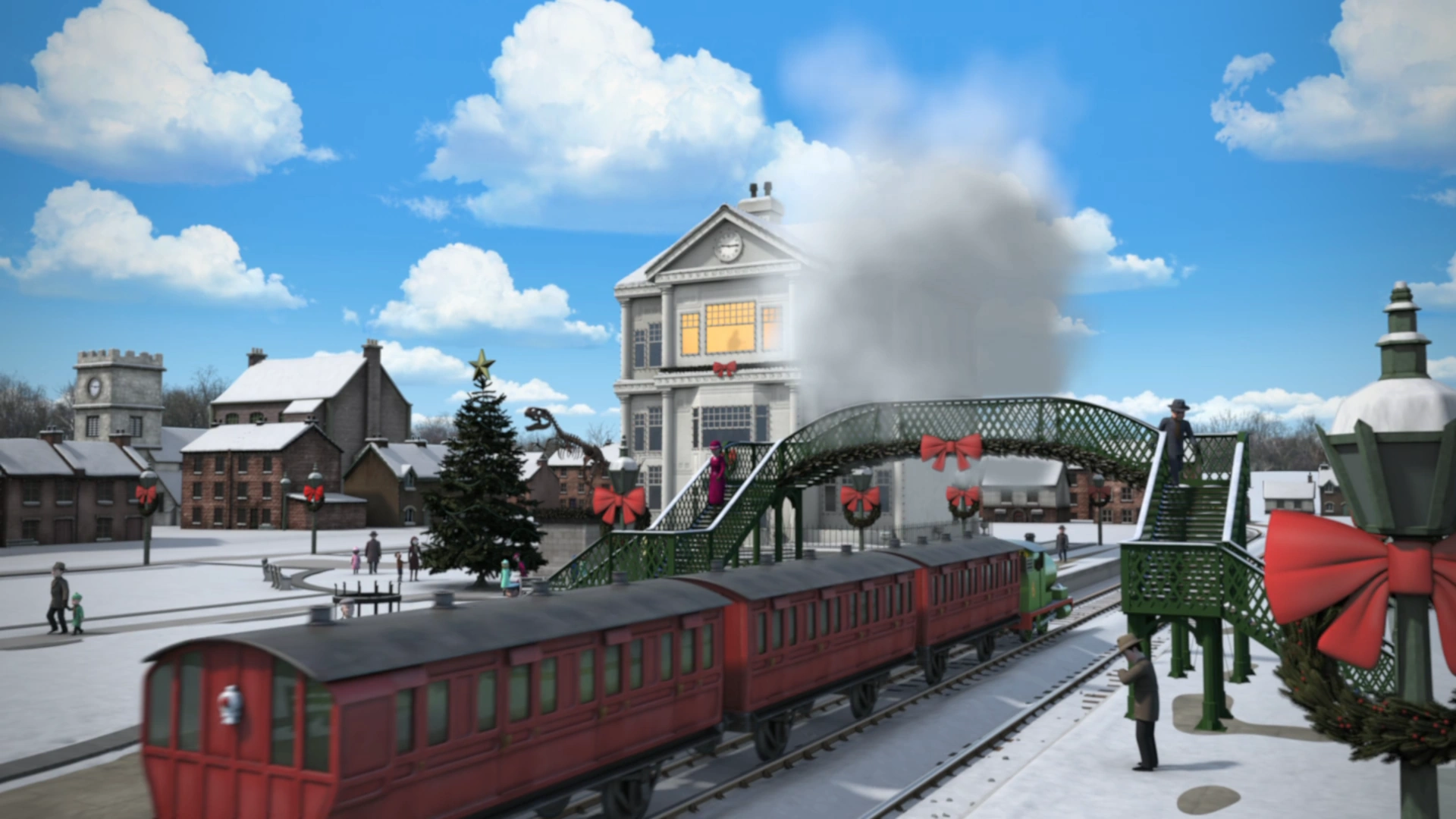 | Diesel now meets up with two other ghostly engines. The Ghost of Christmas Present and the Ghost of Christmas Future, and he later finds the Fat Controller still at Knapford during the Earl's Christmas party at Ulfstead Castle. | |||