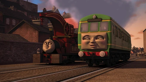 | After Rosie is repainted red, she and James have a race. And later, James' speedy ways cause him to crash into Tidmouth Sheds. | ||||