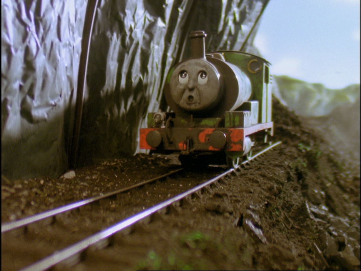 | Percy complains that he is overworked. While working at the coal mine, some runaway trucks escape and crash inside the mineshaft, which causes the mine to collapse. | |||