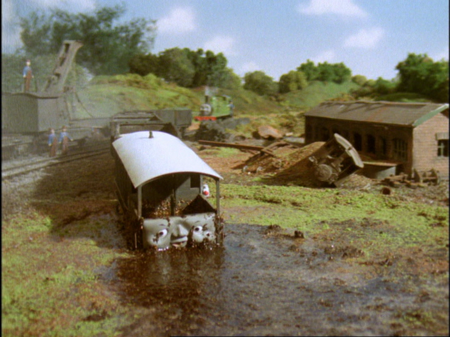 | Henry is cross when Thomas delays him and refuses to listen to his warning about a line eroded by high tides, which he ended up plunging in the sea. | |||