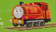 Sixteen was one of several engines who lived at a steelworks on the Mainland. He spent all day shunting trucks to a place called the "Tip". Engines were prohibited from travelling on the Tip's tracks, as the ground was not firm enough to bear their weight. Sixteen, however, did not heed this warning and often tried to pass the "danger" board without success.[1]