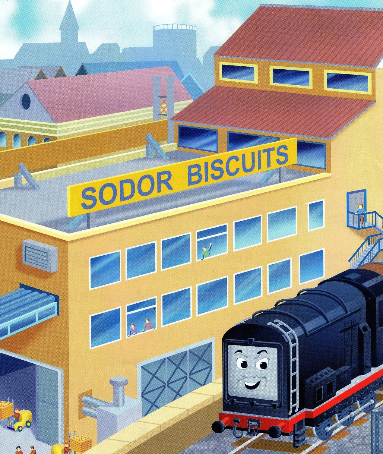Sodor Biscuits is a factory that is located in a town somewhere on Sodor. Diesel once had to collect some biscuits from this factory and take them to the school for a party. The factory was referenced in the 2004 magazinestory, Broken Biscuits. It was actually seen in an activity in the same issue of De Agostini.