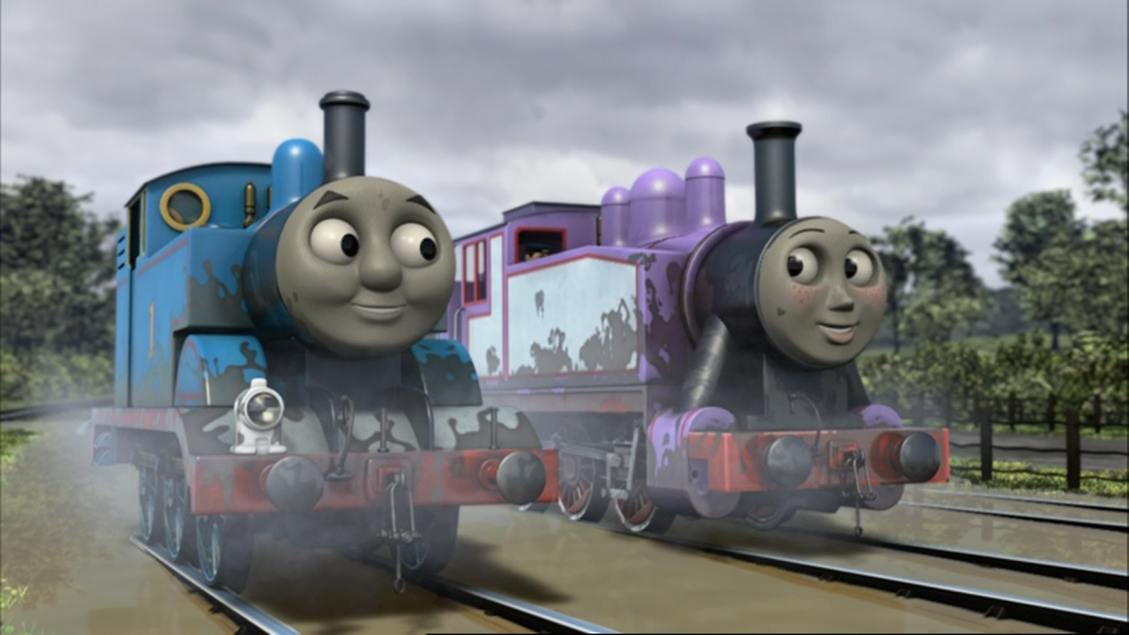 It has been raining for ages on the Island of Sodor. All of the engines are getting splashed with muddy puddles, which is the reason Thomas loves the rain.