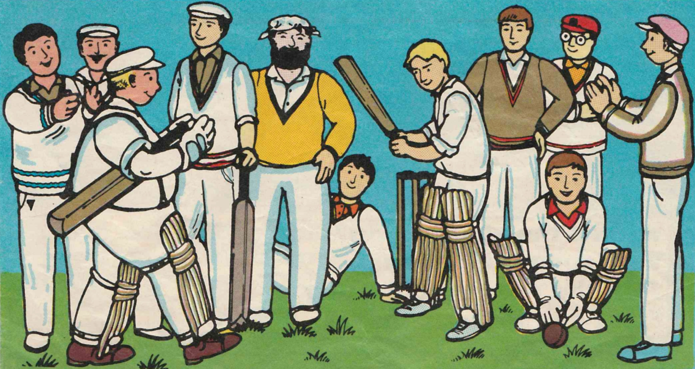 The Cricket Club plays cricket at a field next to Bulgy's Bridge. The club consists of several players and an umpire.