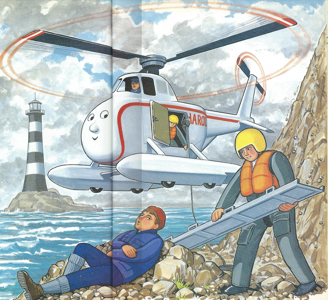 While hiking along a cliff path near the sea, one of the hikers fell down the cliff and landed on a ledge and injured his arm from the fall. But luckily, Harold came to the rescue and flew him over to Wellsworth Hospital to have his arm treated.